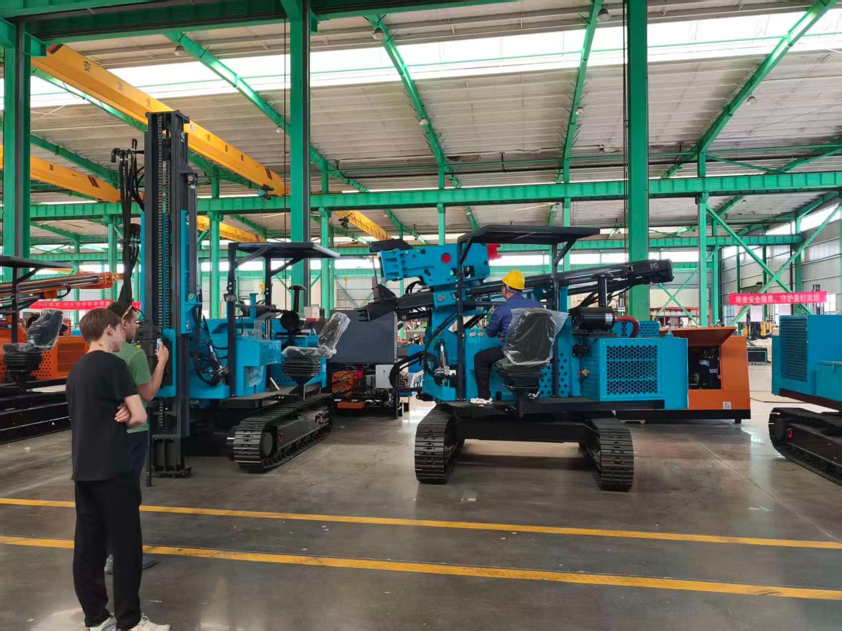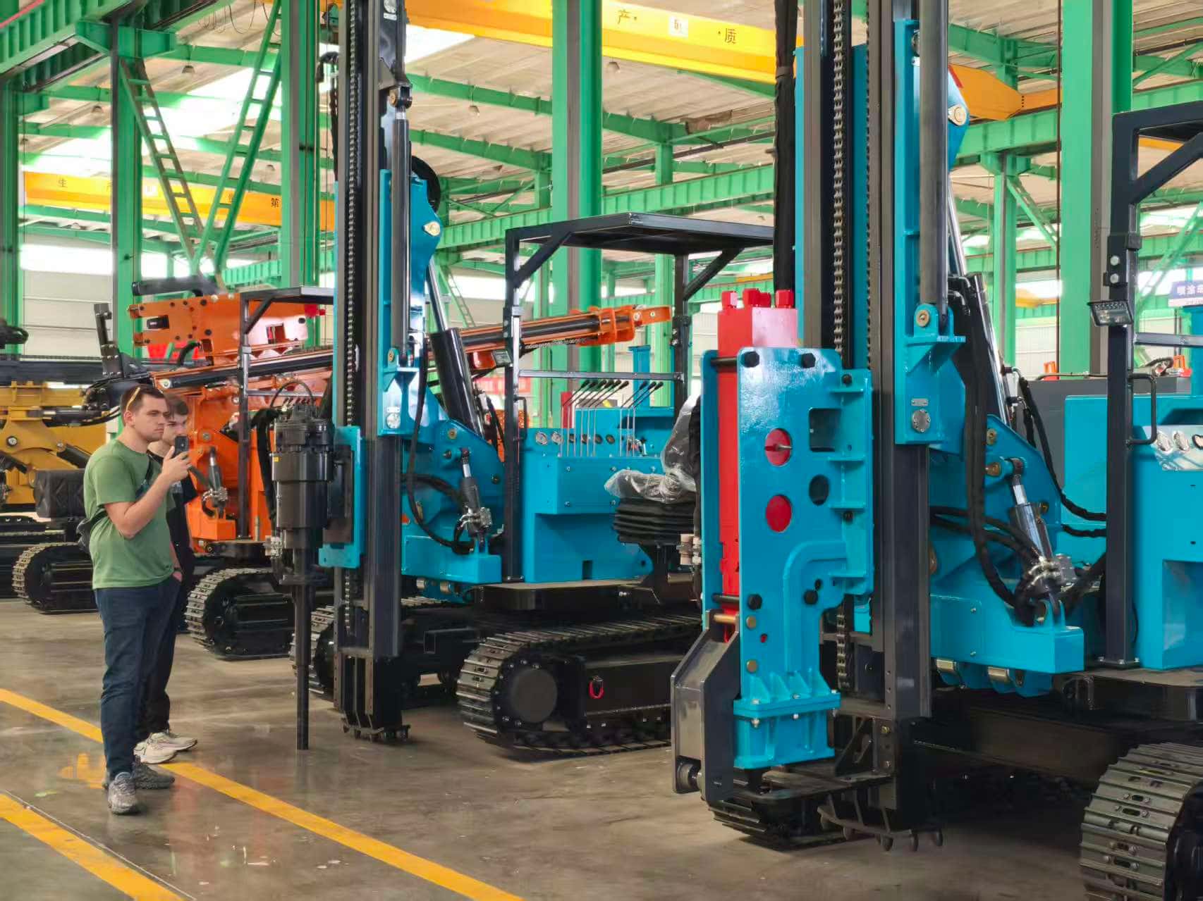 Didampingi oleh tim teknis dan penjualan kami, delegasi klien kemudian memperoleh pemahaman mendalam tentang keseluruhan proses produksi. tenaga surya mesin pemancang tiangMereka mengamati seluruh proses manufaktur TZ536 dan TZ670, mulai dari pemrosesan presisi sistem hidrolik inti dan unit daya, pengelasan dan pengecatan bagian struktural mesin lengkap, hingga pengoperasian akhir dan inspeksi kualitas. Para klien sering berhenti untuk menanyakan detail teknis dan menegaskan kekuatan R&D serta tingkat keahlian perusahaan.