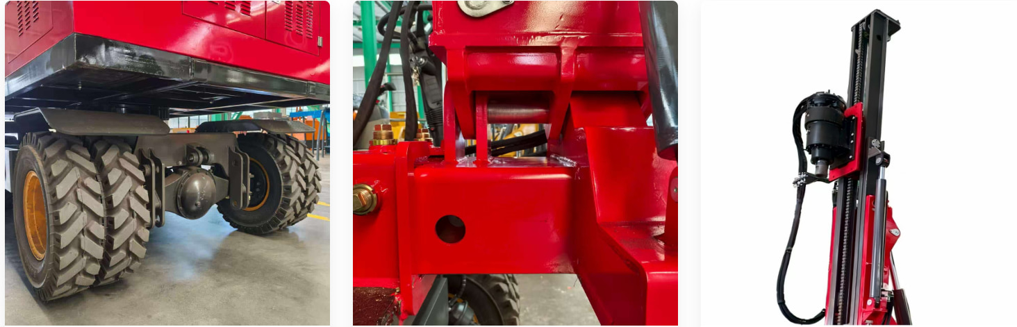 Mengadopsi merek-merek domestik ternama, motor slewing dan bantalan slewing dari Zhongyi memungkinkan badan pesawat berputar 360°. Hal ini memungkinkan pekerja konstruksi untuk menyesuaikan sudut dan arah rig pengeboran di lokasi konstruksi dengan mudah, sehingga dapat memenuhi berbagai kebutuhan operasional dengan mudah.