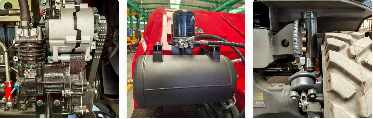 Kompresor udara kecil terpisah disediakan untuk memastikan pasokan udara yang stabil dan pengoperasian sistem pengereman yang andal. Dilengkapi juga dengan tangki penyimpanan udara yang menyimpan udara bertekanan, menstabilkan tekanan udara selama pengoperasian peralatan, mengurangi fluktuasi tekanan akibat seringnya kompresor udara menyala-mati, dan menyediakan sumber udara yang stabil untuk sistem pneumatik.